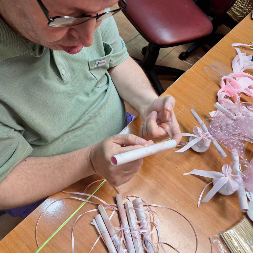 ΕΡΓΑΣΤΗΡΙΟ ΚΑΤΑΣΚΕΥΩΝ Κατασκευζάζουμε χειροποίητες μπομπονιέρες με αγάπη & έμπνευση! Με δημιουργική φαντασία, οι ωφελουμενοί μας κατασκευάζουν μοναδικές, χειροποίητες μπομπονιέρες. Κάθε μπομπονιέρα είναι ένα μικρό έργο τέχνης, γεμάτο αγάπη, ελπίδα και συμμετοχή. Μέσα από αυτή τη δραστηριότητα, τα παιδιά:👐 ενισχύουν τις λεπτές κινητικές τους δεξιότητες🎨 αναπτύσσουν αισθητική και δημιουργική έκφραση🤝 καλλιεργούν τη συνεργασία και την αυτοπεποίθηση […]