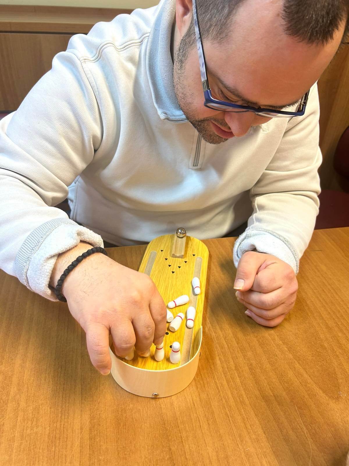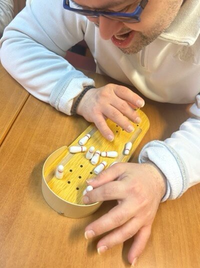 Παίξαμε επιτραπέζιο μπόουλινγκ, συνδυάζοντας παιχνίδι και εξάσκηση δεξιοτήτων.