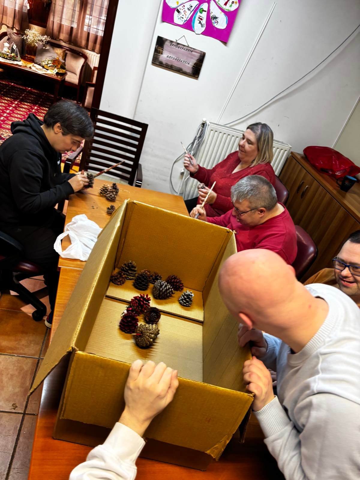 Στην Εργοθεραπεία του Κέντρου μας, οι ωφελούμενοί μας, έχουν την ευκαιρία να εκφράσουν τη δημιουργικότητά τους μέσα από χριστουγεννιάτικες κατασκευές.