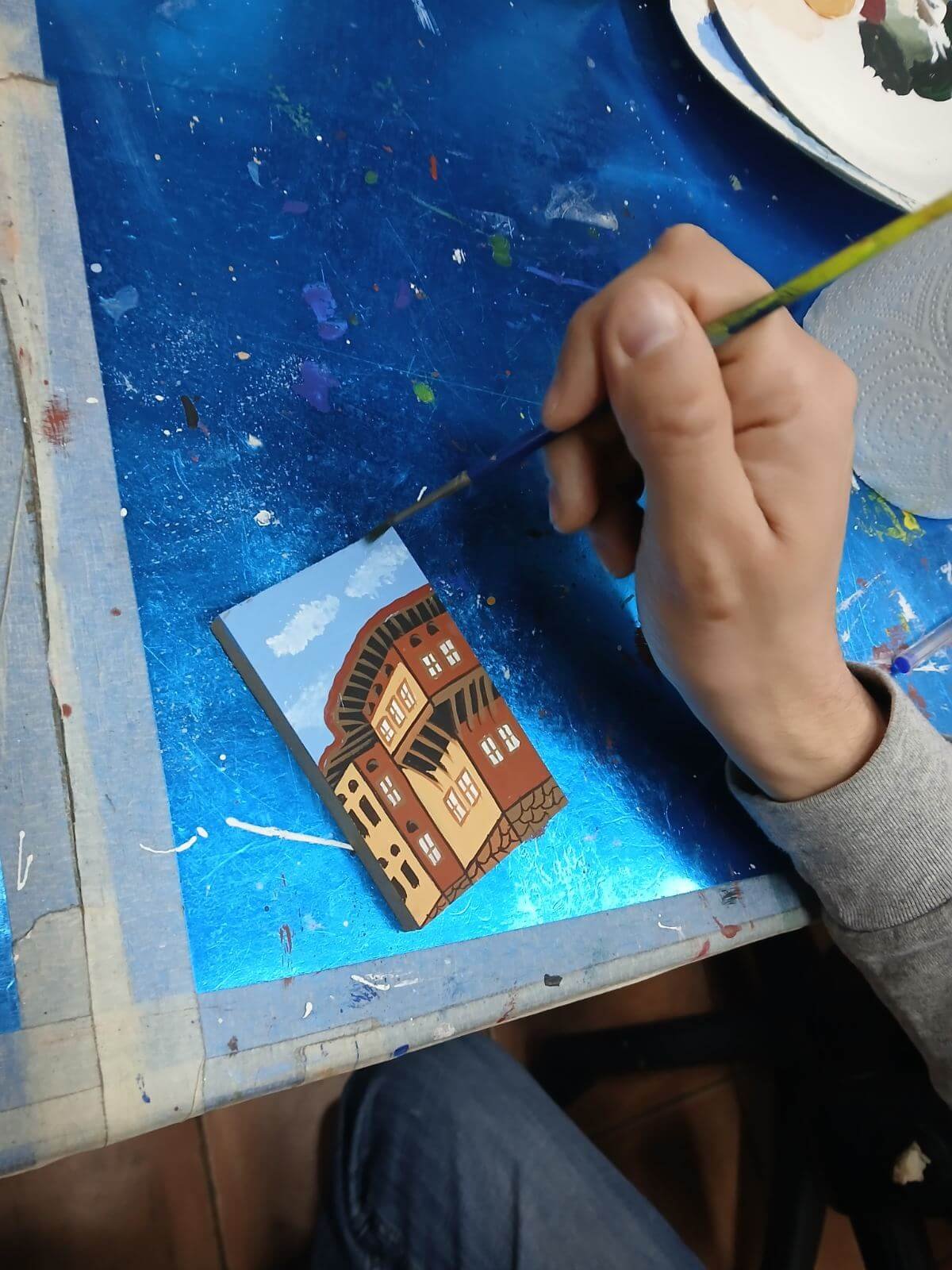 Στη συνέχεια, εργάστηκαν με πινέλα και χρώματα, αποτυπώνοντας τα χαρακτηριστικά του κτηρίου σε χειροποίητα μαγνητάκια, τα οποία ολοκλήρωσαν βήμα-βήμα.